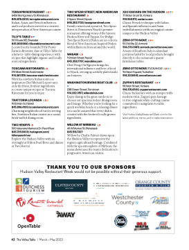 Visit HudsonValleyRestaurantWeek.com for the latest additions, menus, and to make reservations.