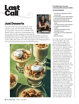 bestselling Dessert Person in 2020, and recently released What’s for Dessert: Simple Recipes for Dessert People. Saffitz splits her time between NYC and her Hudson Valley cabin where much of the magic happens. This refreshing treat from her new book tastes like Key lime pie and couldn’t be simpler.