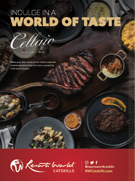 INDULGE IN A WORLD OF TASTE Make your reservation to our Italian-inspired steakhouse and enjoy the menu created by Chef Scott Conant. @resor t sworldcatskills RWCatskills.com
