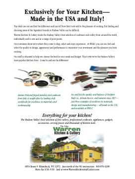 6934 Route 9 Rhinebeck, NY 12572 Just north of the 9G intersection 845-876-6208 Mon–Sat 9:30–5:30 And at www.WarrenKitchenAndCutlery.com