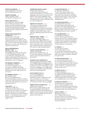 1 River Street, Hastings-on-Hudson 914.478.2800; harvest2000.com Overlooking the Hudson River and Palisades, a magnificent Tuscan farmhouse is the perfect setting for inspired Mediterranean cuisine, with many ingredients picked from the on-site garden.