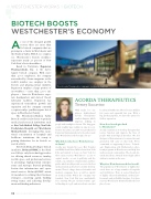 As one of the strongest growth sectors, there are more than 80 biotech companies that are growing in a cluster in Westchester and the Hudson Valley. With 8,000 employ- ees, Westchester’s biotech workforce represents nearly 20 percent of New York State’s biotech workforce.