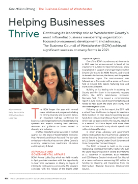 The Business Council of Westchester (BCW) achieved significant success on many fronts in 2021.