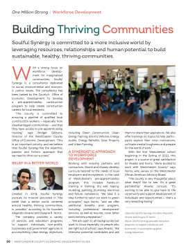 With a strong focus on workforce develop- ment for marginalized communities, Soulful Synergy is a consultancy dedicated to social, environmental and econom- ic justice issues. The consultancy has been tasked by the County’s Office of Economic Development to develop a pre-apprenticeship construction program to help create construction careers for local residents.