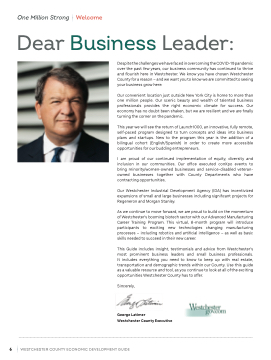 This Guide includes insight, testimonials and advice from Westchester’s most prominent business leaders and small business professionals. It includes everything you need to know to keep up with real estate, transportation and demographic trends within our County. Use this guide as a valuable resource and tool, as you continue to look at all of the exciting opportunities Westchester County has to offer.