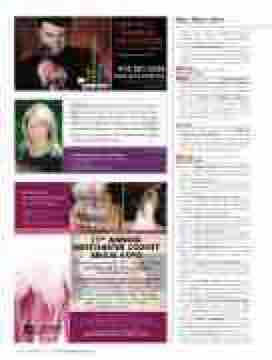 January 29 and January 30: STAMFORD SYMPHONY ORCHESTRA. The Orchestra pres- ents a program titled “Romantic Souls,” featuring works by Shoenberg, Tchaikovsky, and Schubert. Stamford Center for the Arts, Stamford, CT (203- 325-4466; stamfordcenterforthearts.org).