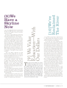 This decade, we reclaimed our waterfront from the grip of old industry. The Red Hat, for example, was once the site of a company that manufactured greenhouses and conservatories. Now, its rooftop bar makes it a prime des- tination for riverside drinks. Yonkers’s former Otis Elevator factory is now the public library. The parking lot adjacent to that GM factory is now Ichabod’s Landing, a community of 44 townhomes and a smattering of retail space.