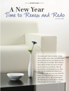 It’s a new year! Time to refresh, renew, and, possibly, redo. And, yes, that means not just how you live, but where you live. So, while you’re in a New Year’s Resolu- tions frame of mind, be sure to include your home on your wish list. After all, your home is an extension of you. And, now that the holidays are behind you, you may actually see your way clear into finally focusing on those I’ll-do-it-some- day home projects. Take advantage of the little window of time before activities heat up again as the weather warms.