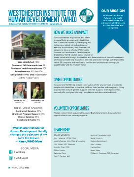 these individuals through the creation and dissemination of innovative research, professional leadership education, and best practices trainings. WIHD provides nearly 50 programs and services to families and professionals throughout Westchester and the Hudson Valley.