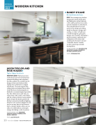 that this aesthetic be worked into the design of their new kitchen while staying true to the home’s original architecture. The team exposed the ceiling joists and painted them white, while the floors and backsplash are finished in a cement-inspired porcelain tile. The cabinet doors and faces are solid cherry, with a dark, rustic finish, and the window interiors were painted black. Despite the darker palette, the kitchen’s natural and artificial lighting keep the work surfaces brightly lit and easy to use any time of day. Because this is a Kosher kitchen, there are two sinks, two dishwashers, and ample storage (including a walk-in pantry).