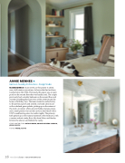 with a subdued green palette, picking up on the nature of the creek. A custom, white-oak unit holds precious pieces, and a small portion was carved out for a small deck with a STUV woodburning stove for colder nights. The primary bath picked up on the natural materials of the bedroom, with a custom walnut vanity, floor tiles from Mosa, and fireclay brick in the shower and behind the vanity.