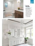 WEST HARRISON This traditional bath was designed for a little girl with touches of pink magnolias on the wallpaper that added charm. The detailed gray- and-white tile from Terra Tile & Marble, the natural wood vanity, and the brass hardware all play perfectly off each other to help complete the space.