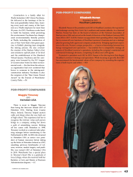 Elizabeth Nunan is the president and CEO of Houlihan Lawrence, the top real es- tate brokerage serving New York City’s northern and eastern suburbs. As a licensed Realtor, Nunan has been on the board of directors of the National Association of Realtors since 2006 and served on the board of directors of the Hudson Gateway MLS from 2014 to 2017. In 2018, Nunan was appointed chief operating officer, empowering her to oversee all core functions of Houlihan Lawrence’s business and set a strategic plan for growing both agent and company productivity. Bringing significant experi- ence to the role, Nunan’s unique perspective — a fusion of knowledge between bro- kerage management and operations — has enabled her to competently manage all aspects of Houlihan Lawrence’s operations, including the company’s residential and commercial brokerage divisions, comprising 32 offices and 1,450 agents.